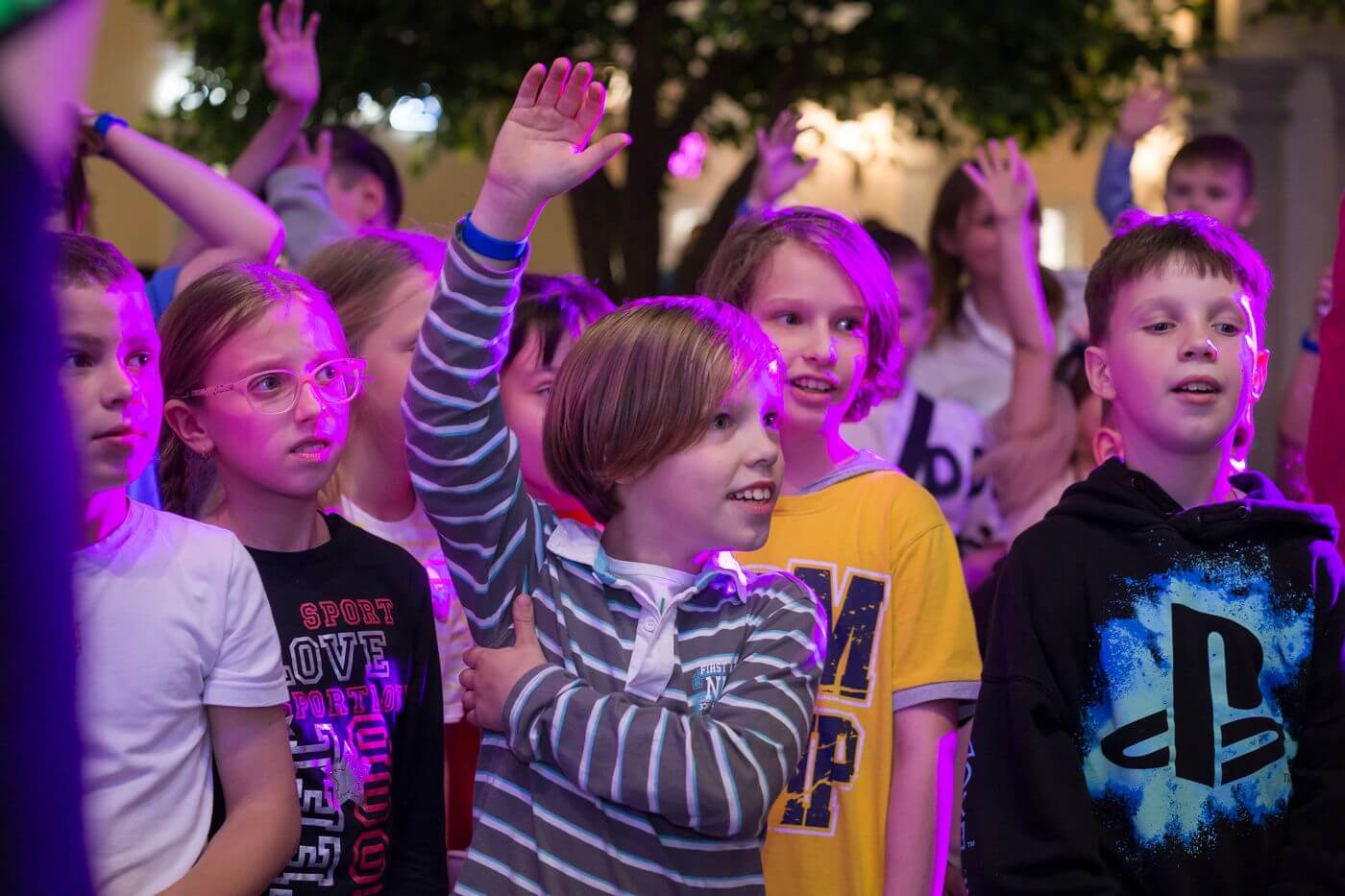 - рухливі ігри. Юних гостей можна поділити на команди та влаштувати їм захопливі естафети: перетягування канату, підкидання мʼяча на кількість, стрибки у мішках — такі заняття зацікавлять дітей будь-якого віку. Лише памʼятайте, що після активних ігор варто подбати про перекус та достатню кількість пиття.