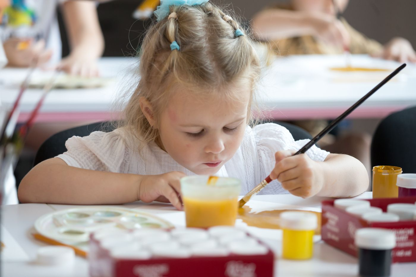 - Малювання та живопис – діти знайомляться із різними стилями малювання — від абстракції до реалістичних зображень, вивчають основи композиції, кольорознавства