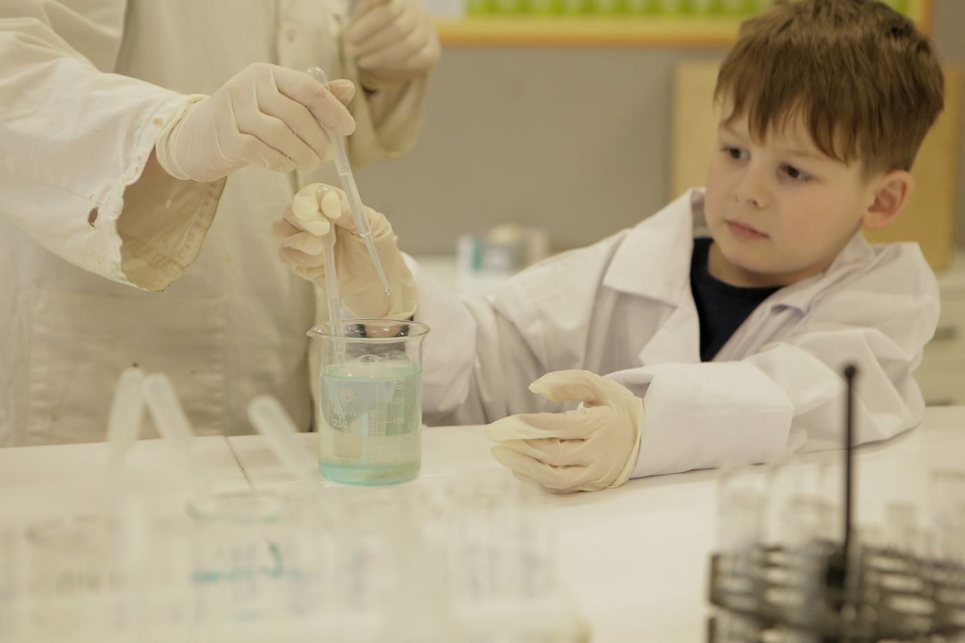 Уроки хімії проходять у сучасній хімічній лабораторії UNI KIDS STEAM-простору під наглядом досвідчених викладачів, які створюють безпечні умови для маленьких дослідників. Усі досліди з хімії проводяться з дотриманням найвищих стандартів безпеки. Тут усі зможуть відчути себе справжніми вченими та відкривачами нового світу.