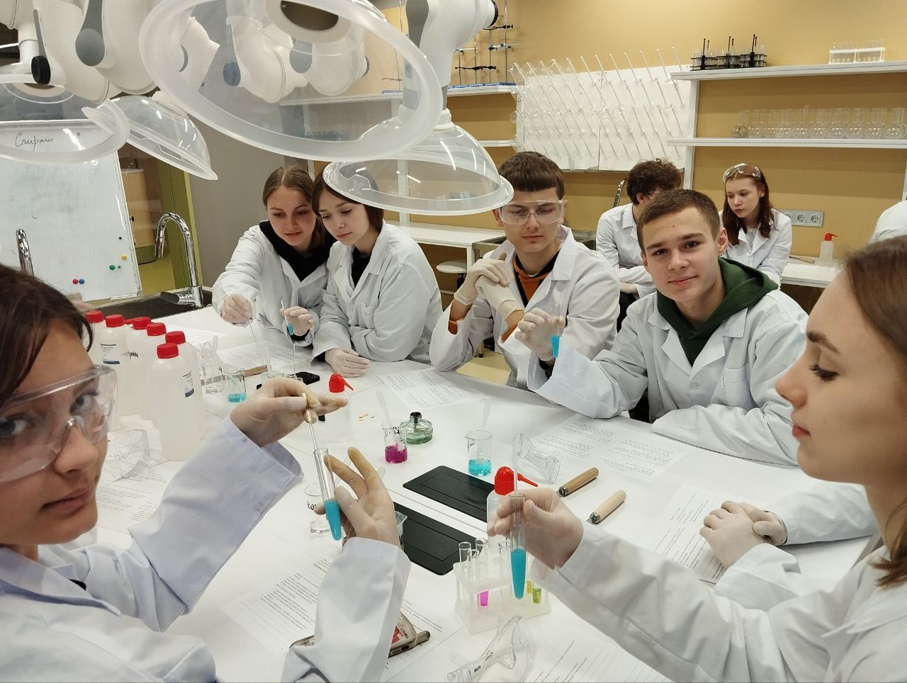 Пропонуємо шкільним групам простір для проведення всіх видів практичних робіт з хімії від 7 до 11 класу, передбачені МОН, включно за програмою НУШ (Нова українська школа) у нашій сучасній лабораторії.